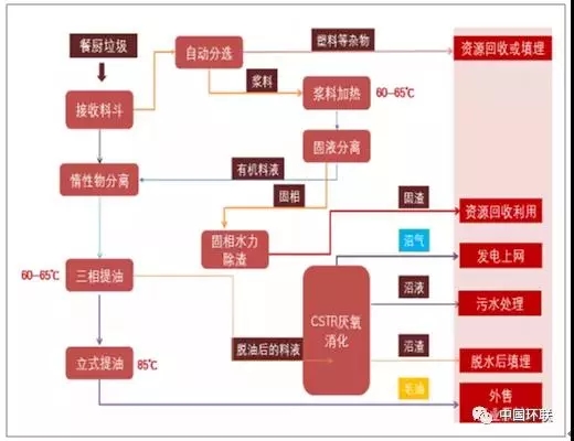 餐廚垃圾的特點包括有機物含量高,含水率高,易腐爛變質,易發(fā)酵、發(fā)臭,主要是采用厭氧消化、好氧堆肥和飼料化工藝等生物法進行處理。其中厭氧消化工藝能最大化回收油脂,無害化程度高,并能夠充分地對餐廚垃圾中的有機物進行資源化回收和利用,已經有超過70%的餐廚垃圾處理項目使用這條技術路線,是現階段的主流工藝路線。