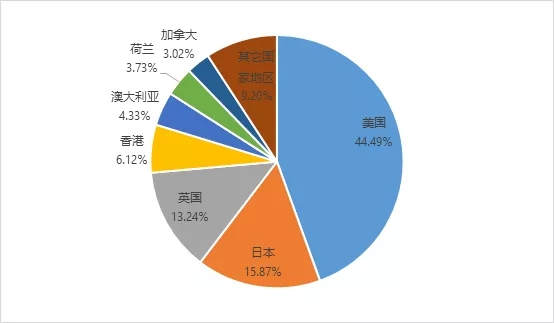 2019年從進(jìn)口源地看,美國(guó)仍然是最大來源國(guó),為461.04萬噸,占比44.49%,較上年提高7.31個(gè)百分點(diǎn),其次為日本的164.5萬噸,占比15.87%,同比下降0.31個(gè)百分點(diǎn),第三為英國(guó),占比13.24%,同比上升0.91個(gè)百分點(diǎn),然后是香港和澳大利亞。