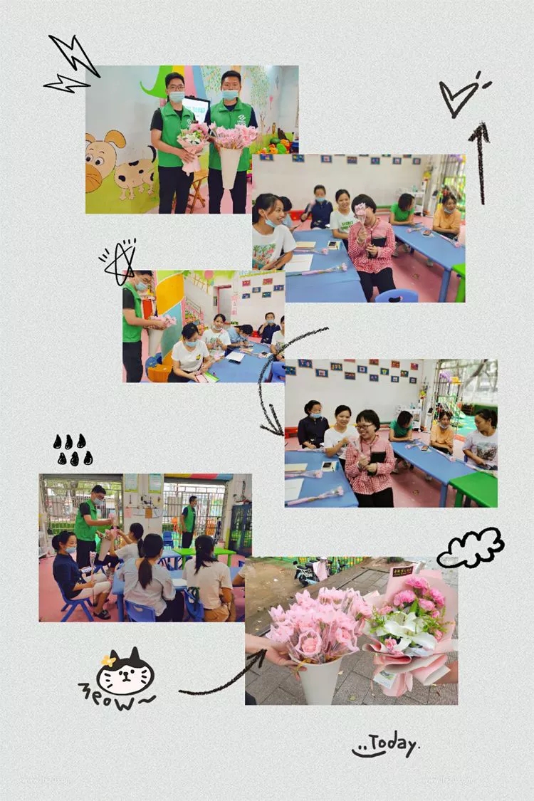 活動開始,由兩位工作人員擔任“護花使者”,將一朵朵鮮艷嬌滴的粉色康乃馨送至每位老師手上,祝愿所有的老師們節(jié)日快樂!