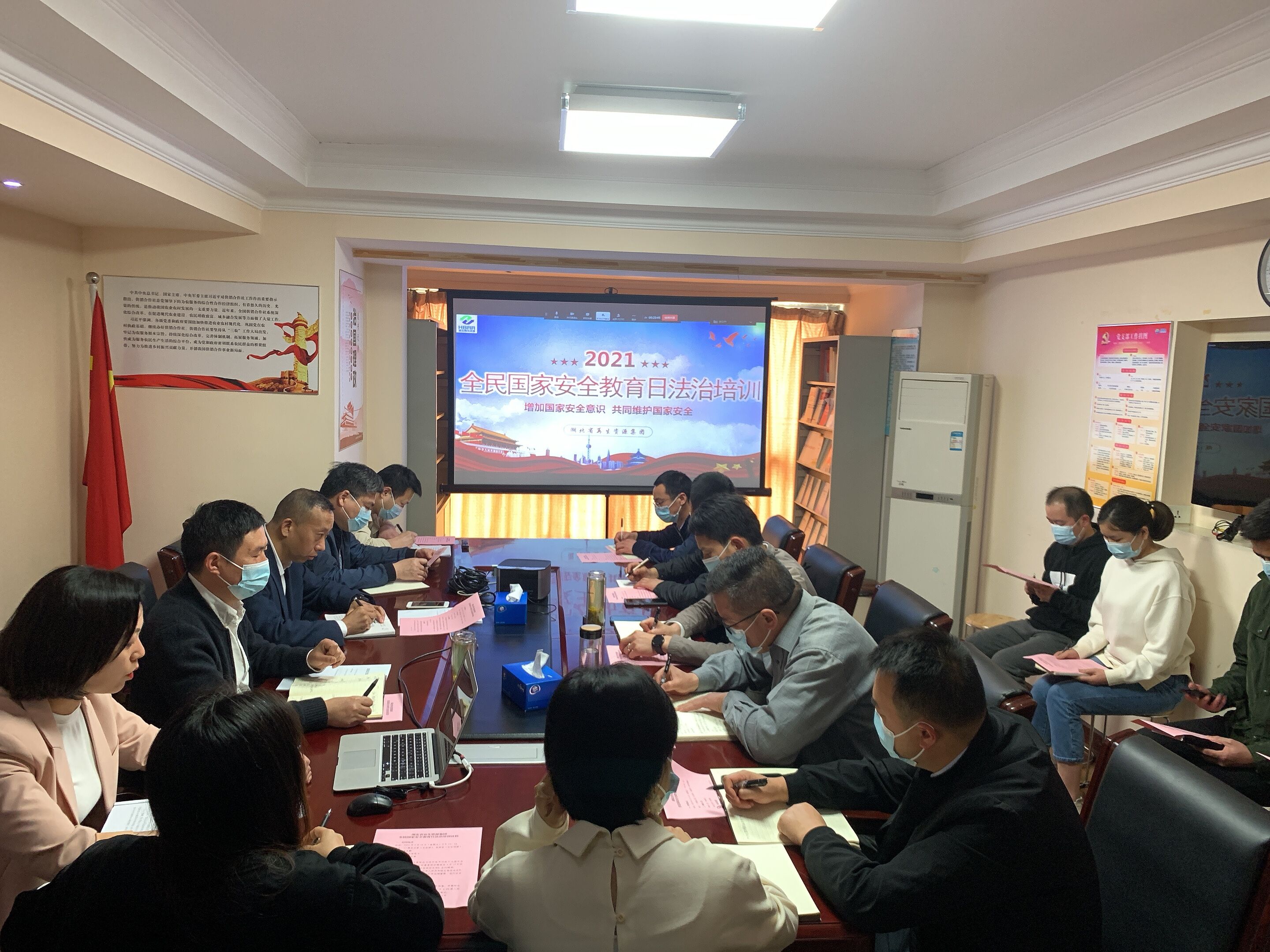 培訓會上,劉冬青同志傳達了習近平總書記在十九屆中央政治局第二十六次集體學習的重要講話精神、關于國家安全觀的重要論述摘編及4.15供銷講堂《國家安全形式與總體國家安全觀》內(nèi)容。全員集中學習《國家保密法》及《中華人民共和國生物安全法》。
