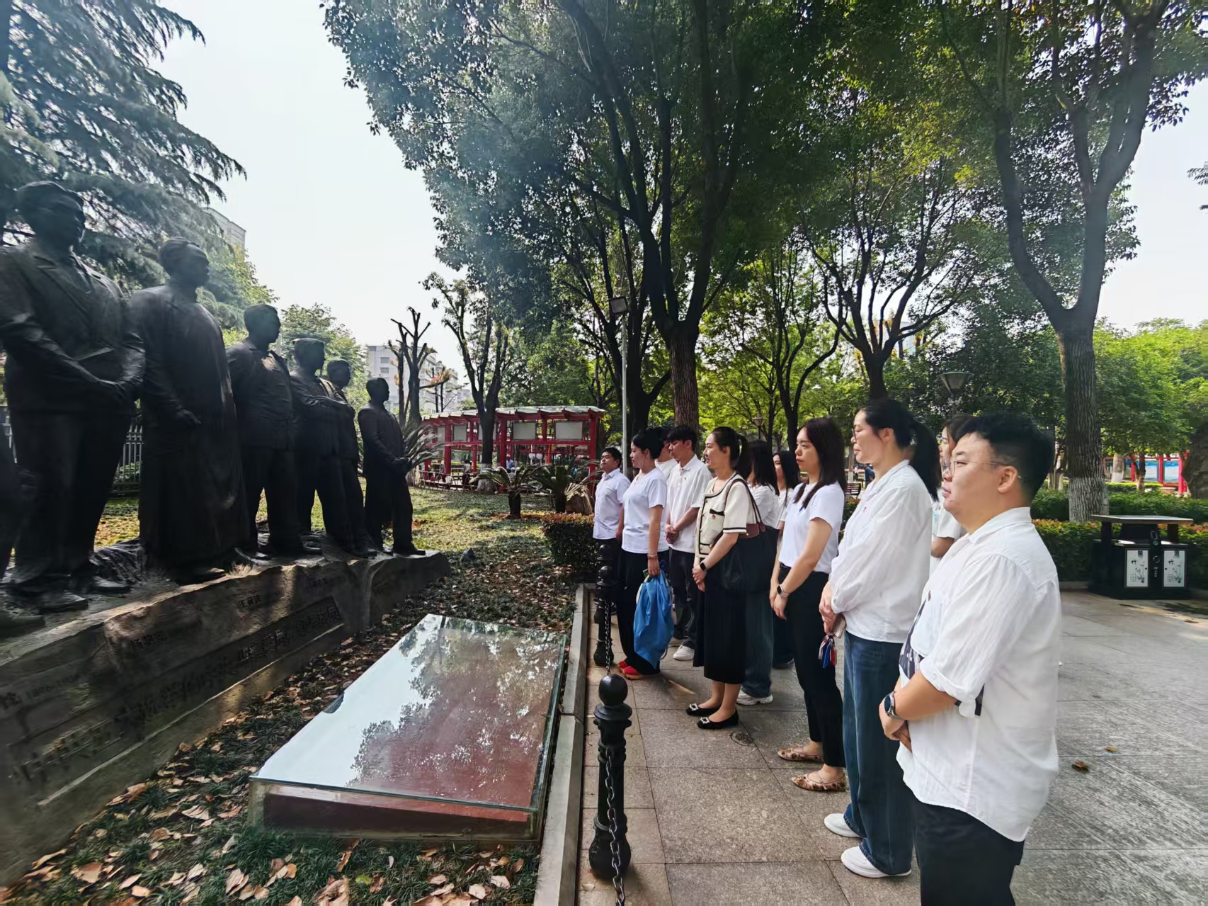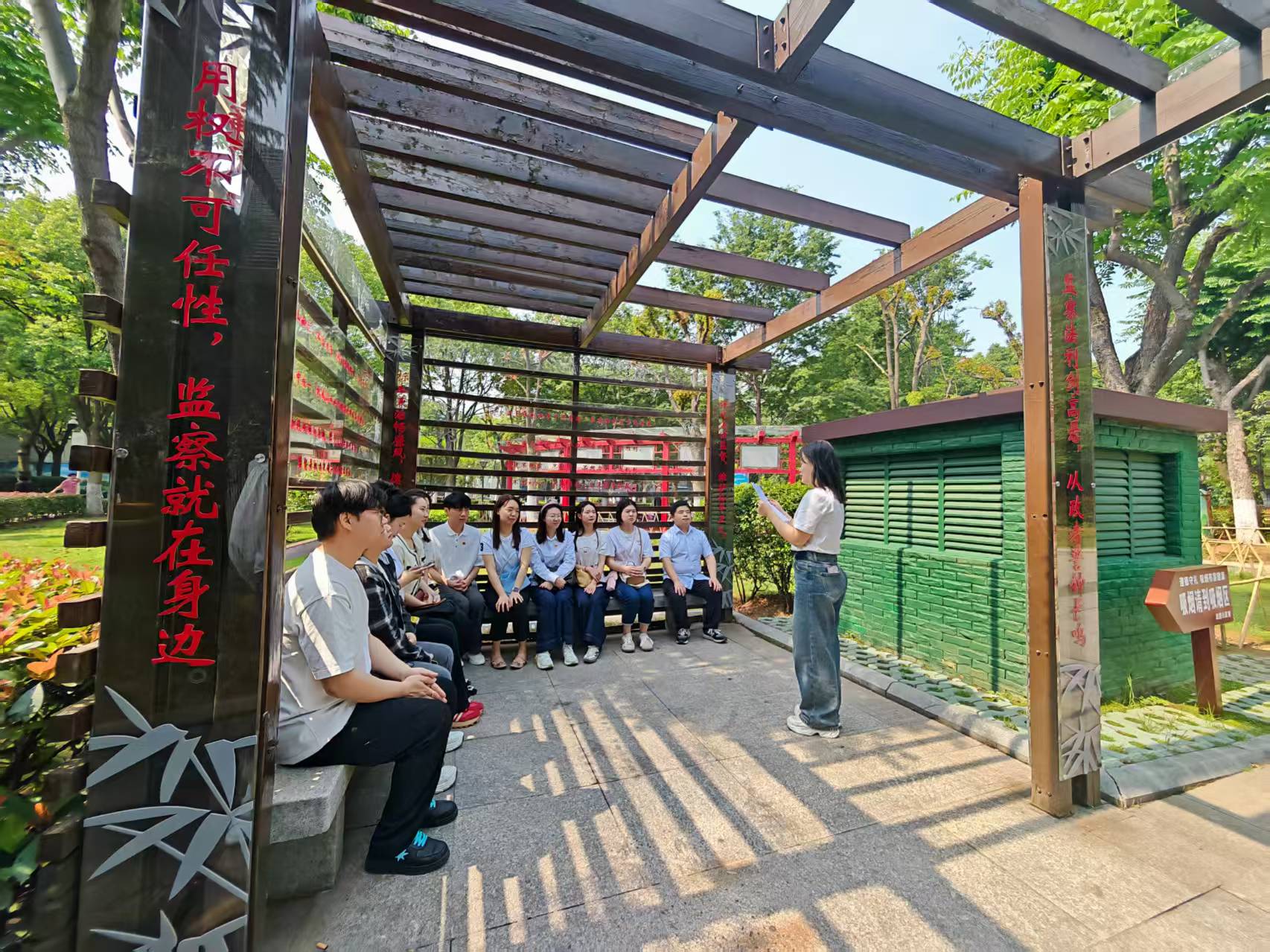 隨后,大家走進(jìn)廉政文化公園,駐足學(xué)習(xí)了豐富的廉政語錄,集體瞻仰中國(guó)共產(chǎn)黨首屆中央監(jiān)察委員會(huì)10名成員大型青銅雕塑《永遠(yuǎn)的豐碑》。漫步“廉政故事”長(zhǎng)廊,感受清風(fēng)正氣,一幅幅生動(dòng)詳實(shí)的圖片、一件件革命先輩的清廉故事、一句句發(fā)人深省的廉政粹語,充分展示了中國(guó)共產(chǎn)黨鐵腕反腐的勇氣和決心。